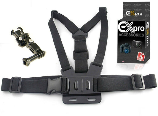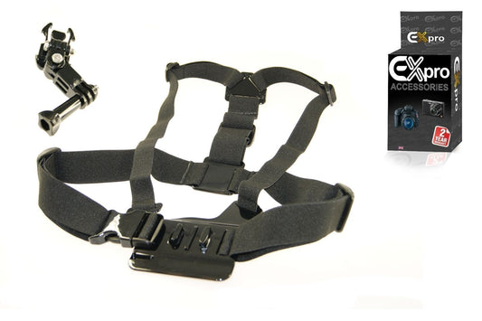 Ex-Pro Adjustable Chest Mount Harness with 3-Way Pivot Arm for Action Cameras / GoPro Housing