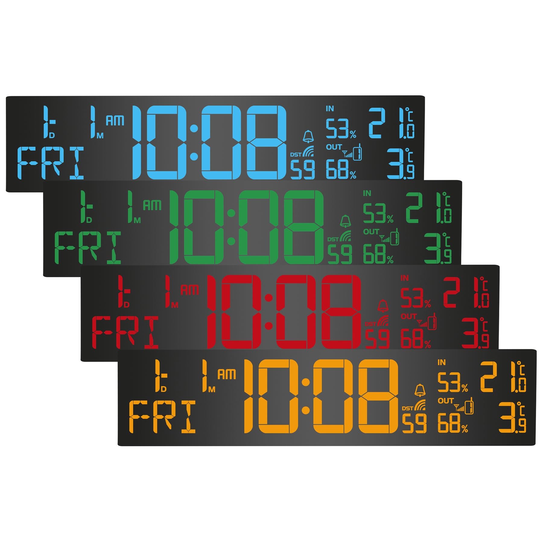 • Display color adjustable or temperature dependent