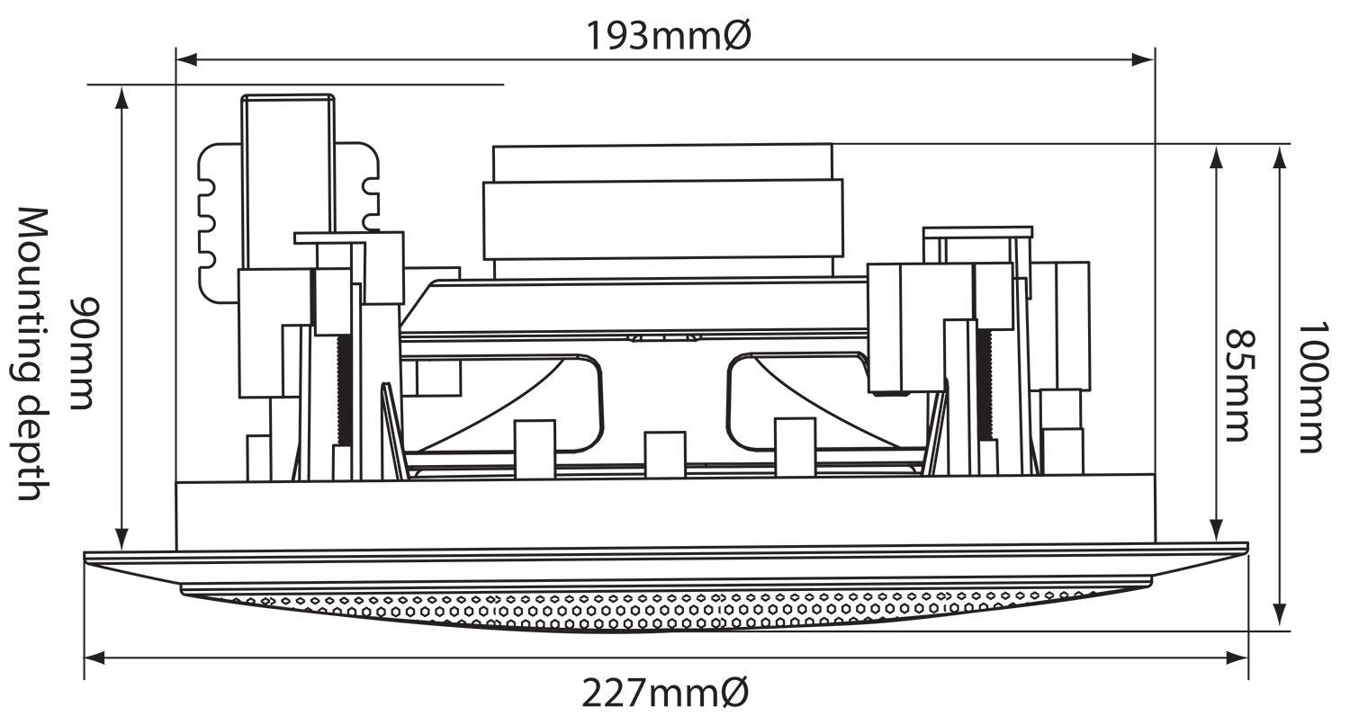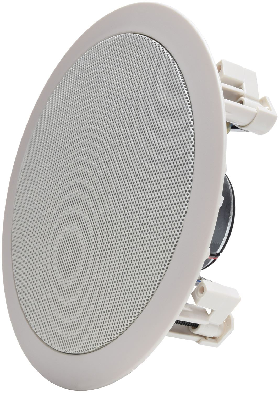 2-way quick fit ceiling speakers with PP mica bass driver and directional dome tweeter giving an excellent frequency response, all housed in a white polymer frame with metal grille.