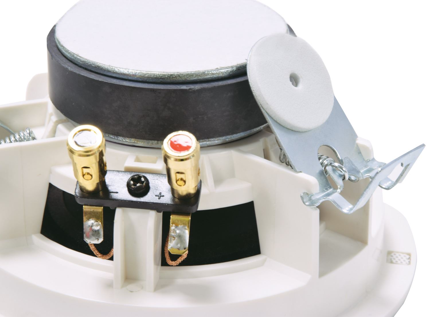 A high-grade ceiling speaker featuring a hi-flex polypropylene cone main driver for extended low frequency response, and a mylar tweeter unit for accurate HF reproduction. Two quick-fit spring clamps enable easy installation. The result is a minimalist profile for a discreet and understated sound system.
