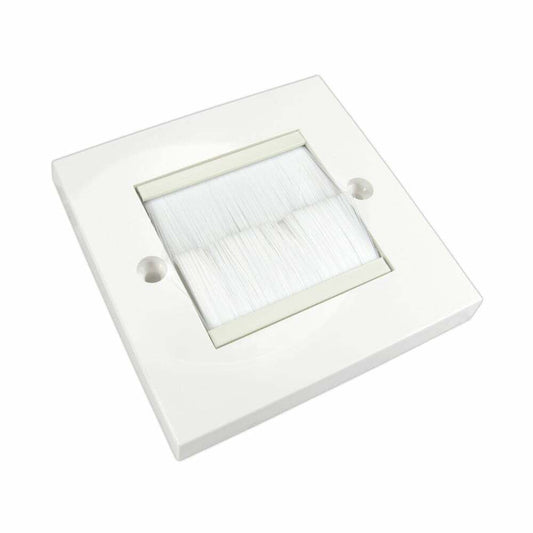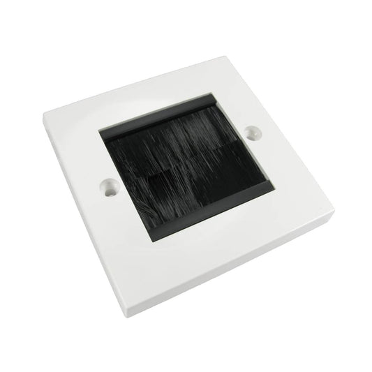 Ex-Pro 1 Gang Single Brushed Wall Plate Outlet Cable Entry Plate Tidy Mount Wallplate - White / White