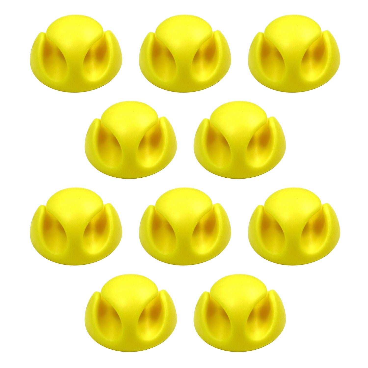 Ex-Pro 10 Pack Double Cable Desk Tidy Clips, Self Adhesive Cord Holder Clips for USB Power Wire PC Office Home, Yellow