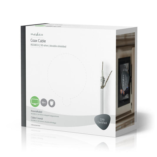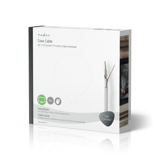 Nedis Coax Cable On Reel | RG59 | 75 Ohm | Double Shielded | ECA | 25.0 m | Coax | PVC | White | Gift Box