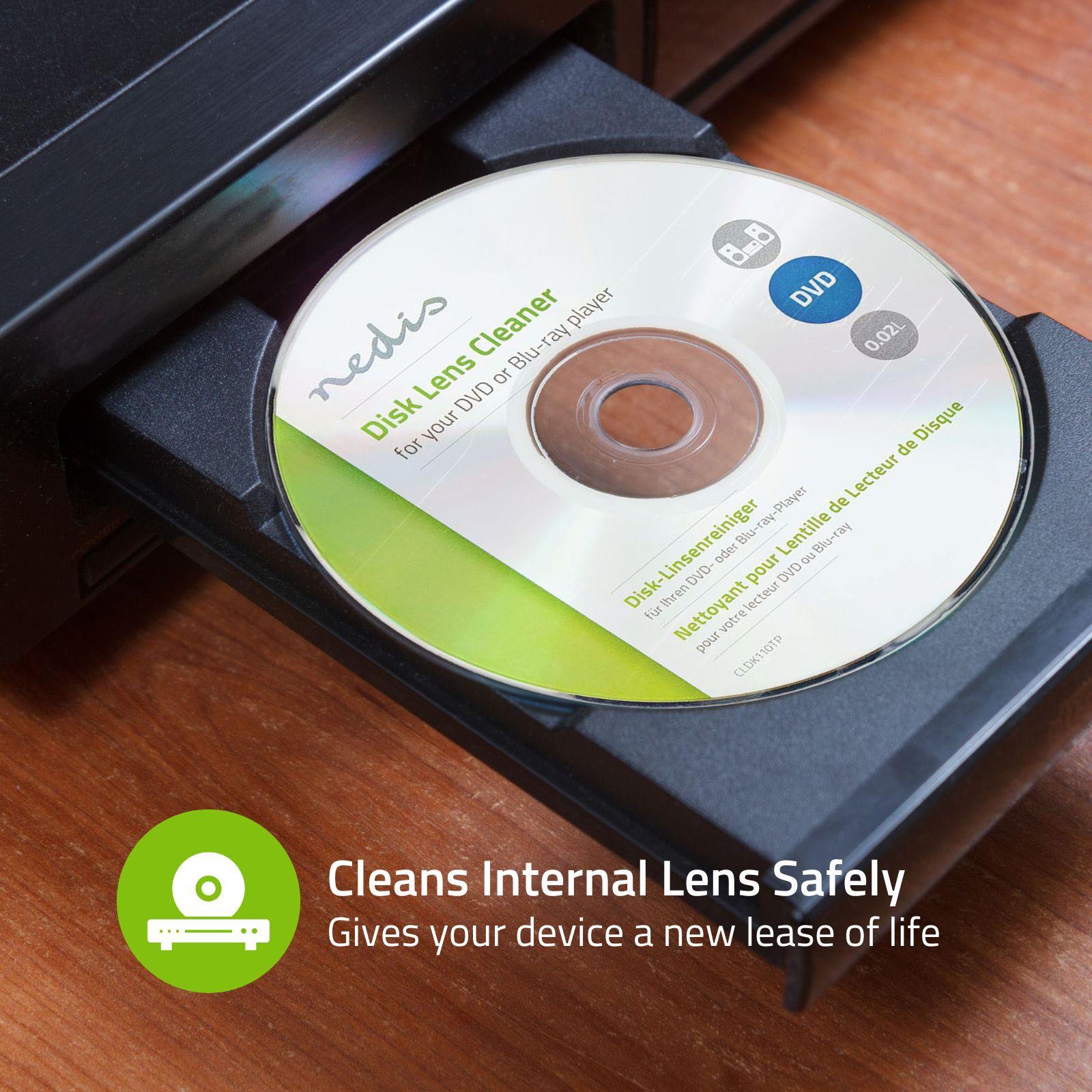 Lens cleaner kit to clean DVD, Blu-ray or CD ROM player lenses safely and easily. Apply a small amount of fluid to the brushes of the cleaning DVD, insert the DVD and press play to clean the player lens safely and easily. A menu will appear on-screen for additional, visual support.