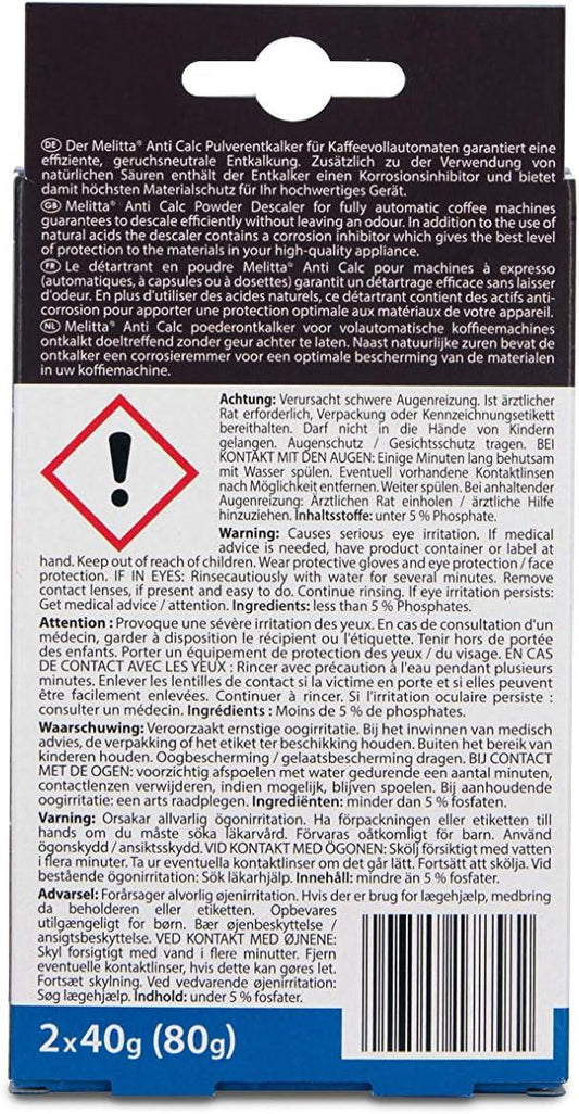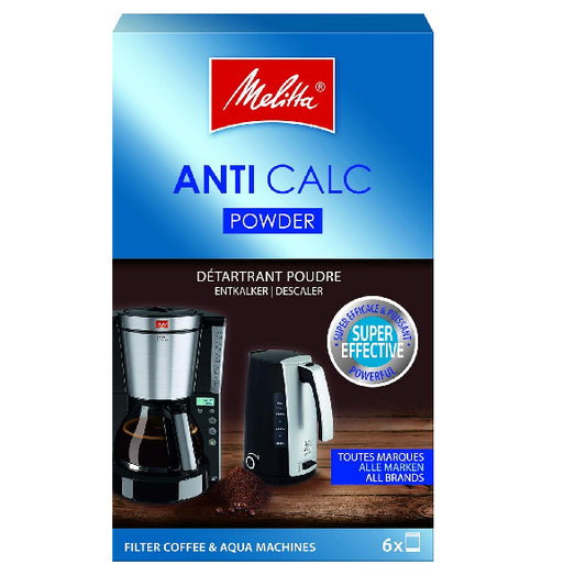 Melitta Anti-Calc Powder Descaler for Filter Coffee Machines, 6 Powder Bags of 20g