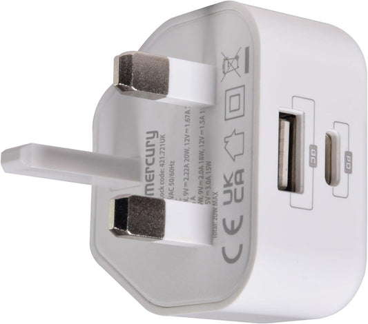 Mercury Dual USB UK Mains Charger 2.4A Perfect for Smartphones, Tablets & Other USB Devices
