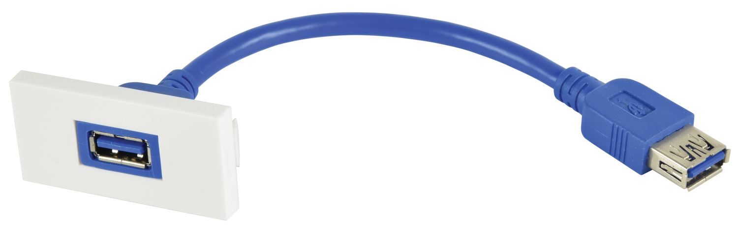 50mm x 25mm clip in module with a high speed USB 3.0 type-A socket and female tail to the rear. Ideal for connecting USB peripherals and devices in a different location without the need for trailing wires. Suitable for domestic, commercial or educational applications.