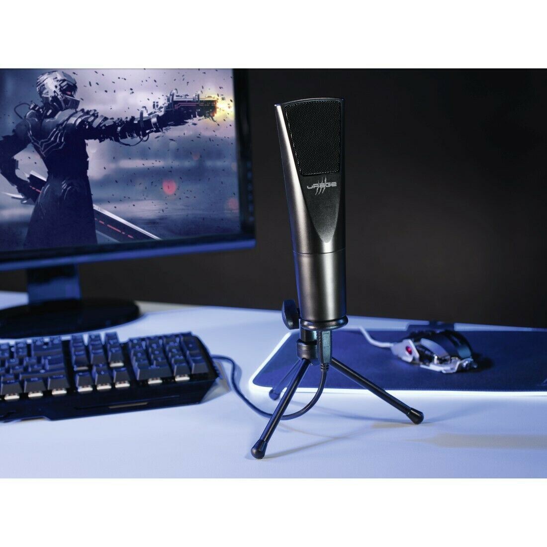 Specifications: Tripod version: secure grip and adjustable tripod, universal in use Studio version: attachment using microphone spider Streamer version: high-quality adjustable aluminium microphone arm (attached with table mounting bracket) Powerful USB microphone Distortion-free and detailed video recordings Flexible dual-screen pop filter: interference-free recordings thanks to filtering of interference noise High-quality, robust metal housing Plug and play Cable: 2.5 m Frequency Range 20 Hz - 16 kHz Impedance 2200 Ω Connectivity (Connection) Connection Cable, USB A Socket Uni-directional Capacitor Sensitivity -45 dB ± 3 dB