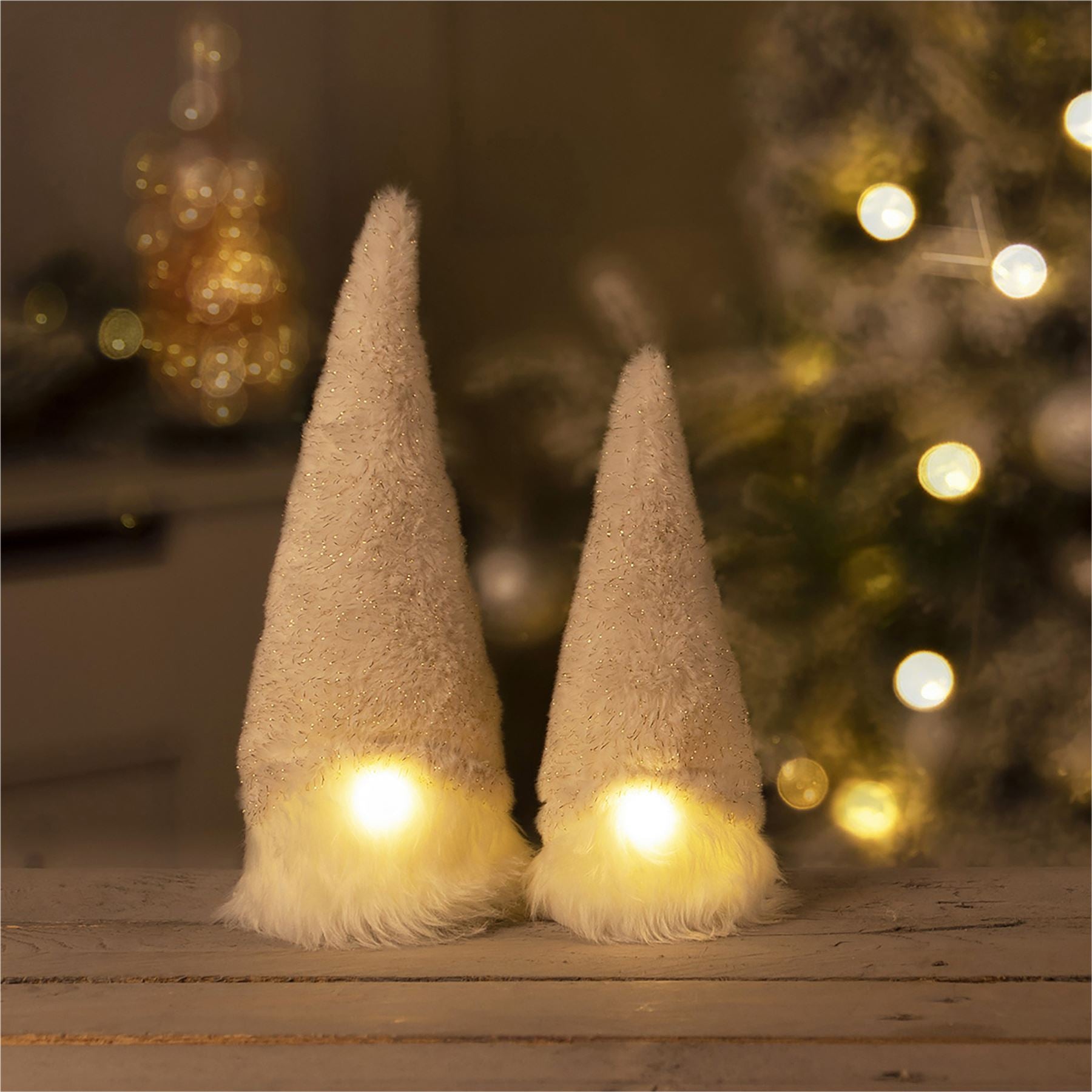 Delight your family and friends this Christmas by introducing our festive gonk family to your home, we are extra special as our noses all light up, how clever are we! We all love to sit on fireplaces, coffee tables and stairs and we like nothing more than to watch you celebrate with your friends, have fun or work. We gonks originated in Scandinavian folklore as small, white-bearded creatures and have been widely adopted in recent years as a festive decoration of choice, we just love being so popular. We are perfect for use as part of a temporary display for Christmas parties, model villages, Santa grottos and restaurants and bars.
