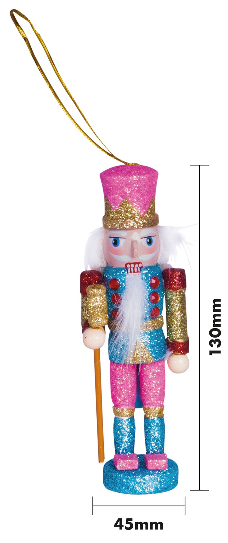 Glitter Nutcracker Hanging Christmas Tree Decoration - Pink