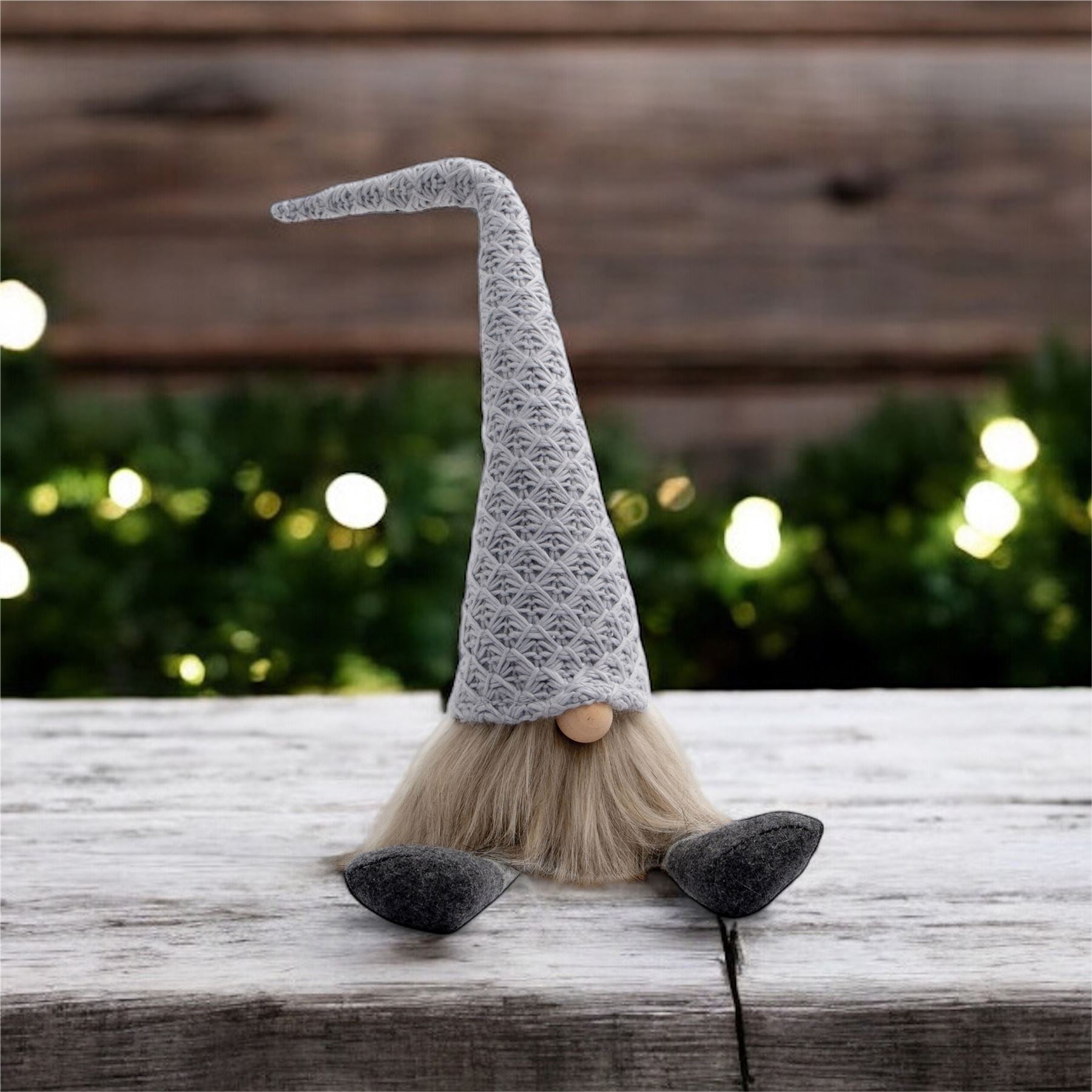 Knitted "Erik" Christmas Sitting Gonk Decoration Nordic Gnome Elf Festive Ornament with Wooden Nose - Grey