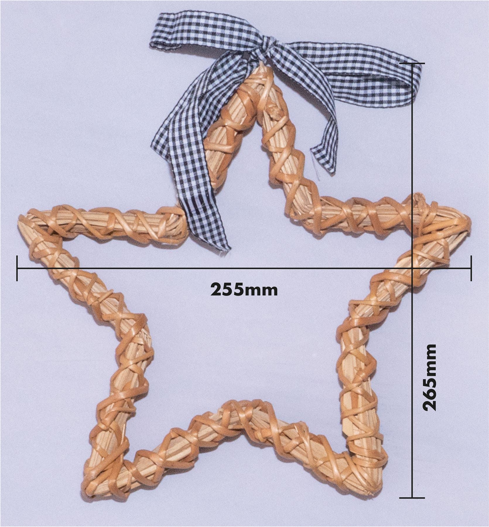 Add a touch of class to your Christmas decorations with this beautiful and rustic wicker star. The star is made from woven wicker and is finished off with a black and white check bow. This star is perfect for displaying in your lounge, hallway, or kitchen, and would even make a fabulous addition to your workspace. It can be hung up using the metal loop or displayed as a free-standing decoration. It could also be used as part of a temporary display for Christmas parties, model villages, Santa grottos and restaurants and bars.