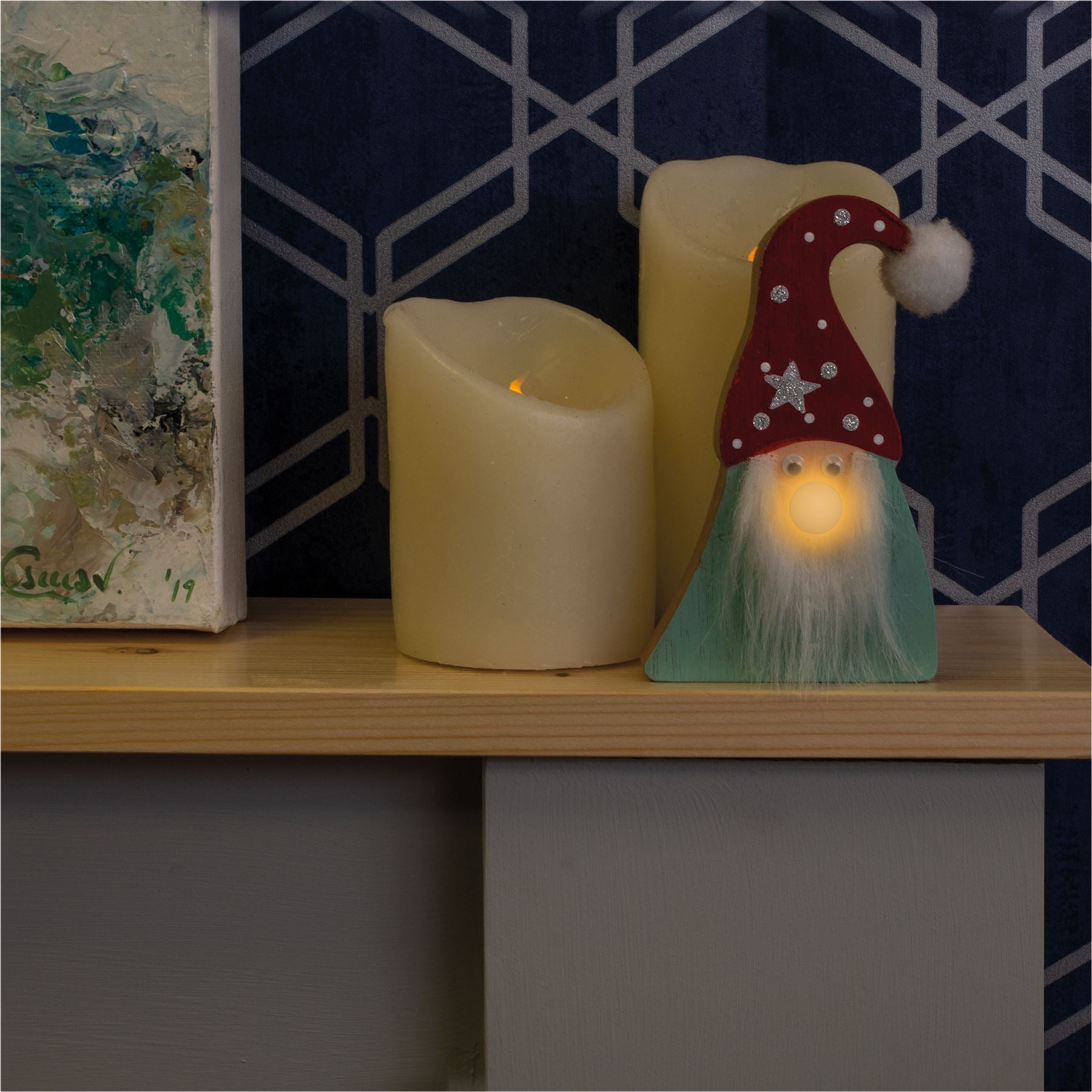 Wooden Gonk Decoration with Light up Nose