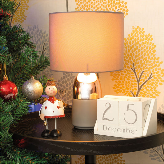 Standing Metal Christmas Angel Ornament Decoration with Wings Halo & Bell - White