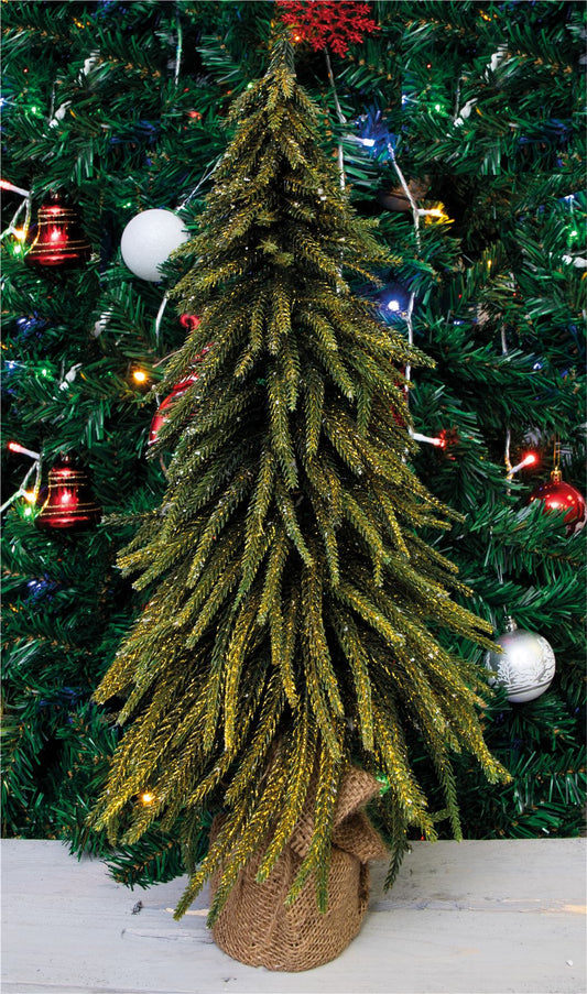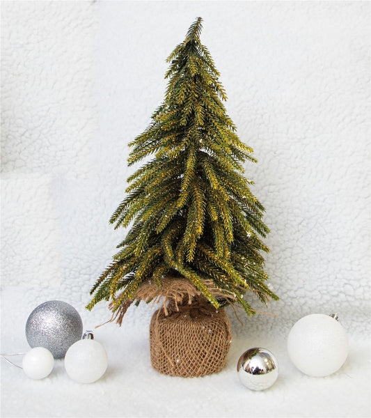 Decorative Gold Finish Mini Artificial Christmas Tree in Hessian Bag - 52cm