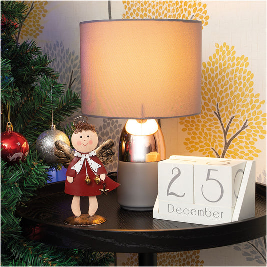 Standing Metal Christmas Angel Ornament Decoration with Wings Halo & Star Bells - Grey