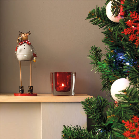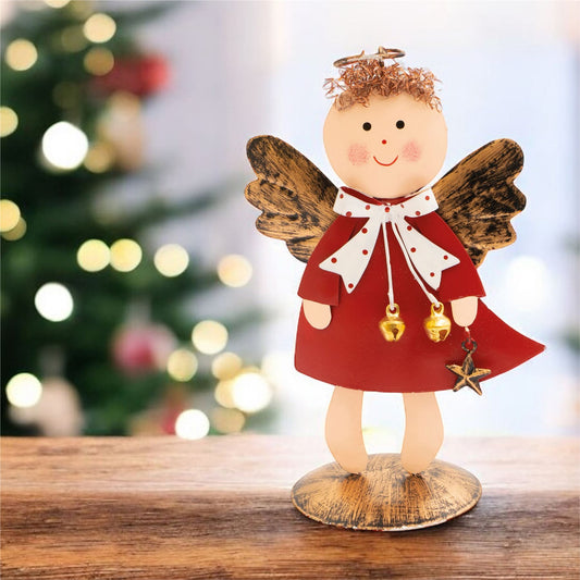 Standing Metal Christmas Angel Ornament Decoration with Wings Halo & Bell - Red