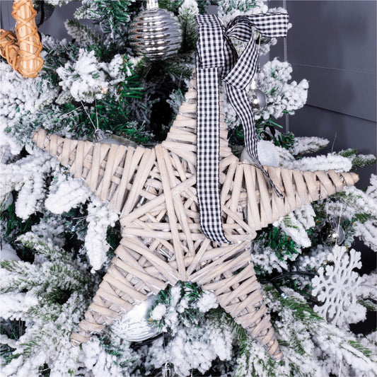 Natural Wicker Hollow Christmas Star Silhouette Rustic Wall Hanging Decoration