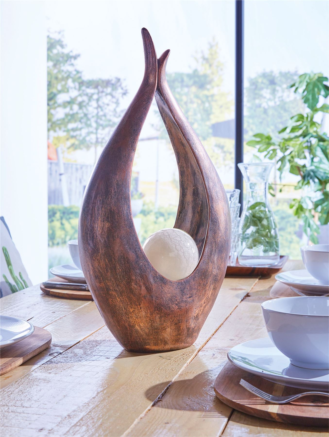 Solar Powered Zen Flame Effect LED Light Garden Ornament Antique Copper