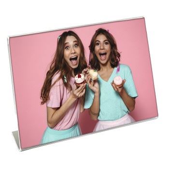Simple acrylic frame with a great visual effect ,Comes with an L-shaped stand ,Ideal for presenting flyers, advertising brochures, etc. in companies, can e.g. be placed on a counter