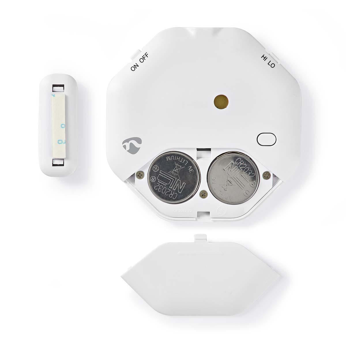 The ultra-thin window / door alarm is designed to trigger a burglar alarm when a door or window is opened. With the simple switch on the side of the device, the device can be switched on and off if necessary. The thin profile makes it ideal for mounting on a window or door. The alarm requires 2 x CR2032 batteries (included), the average battery life for normal use is one year. The alarm has an indicator light for an almost empty battery. Press the "Battery test" button on the front of the device to check the battery status. The alarm unit is mounted with a set of double-sided adhesive tape (included), stick the alarm and magnetic sensor on the door or the window and you are done.