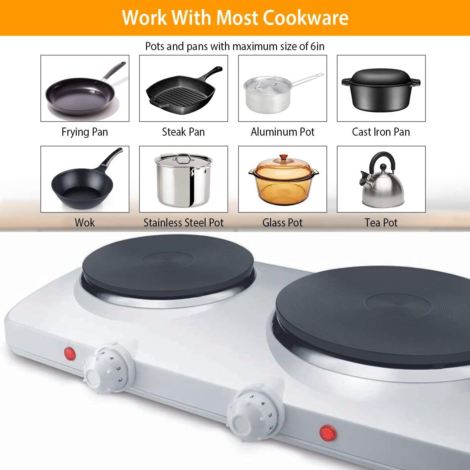 Designed for versatility and ease of use, this free standing hot plate features two hotplates, measuring 15.5 cm and 18.5 cm respectively. Whether you're using small or large pans, this hot plate accommodates them all, allowing you to cook a variety of dishes effortlessly. The manually adjustable temperature control with 5 settings gives you precise control over the heat, ensuring optimal cooking results every time.