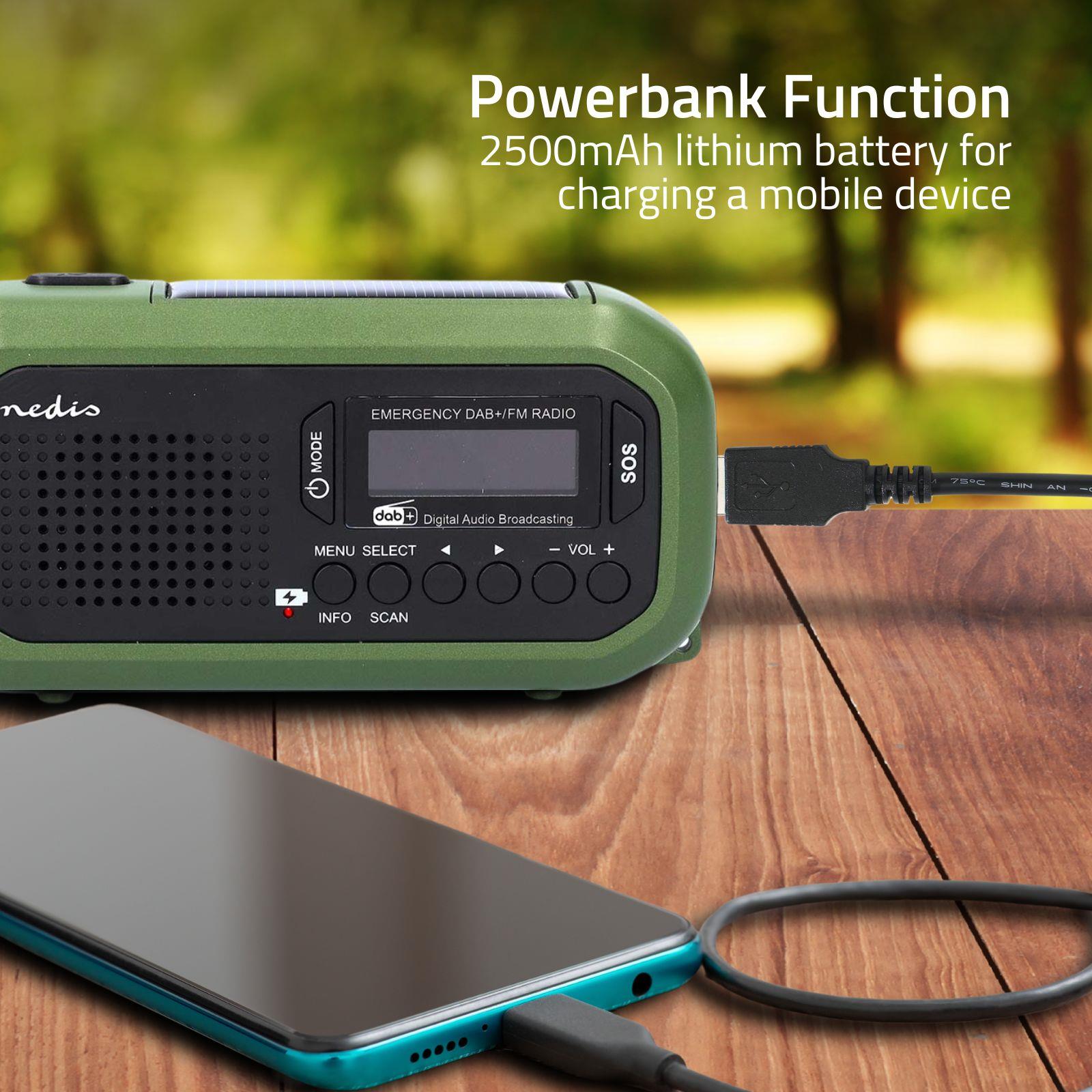 Nedis Portable Emergency DAB+/FM Wind Up Radio with Solar Panel & Hand Crank, with 2500mAh Rechargeable USB Power Bank, LED Torch & SOS Alarm, for Camping, Hiking & Outdoor