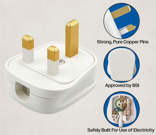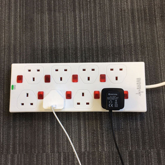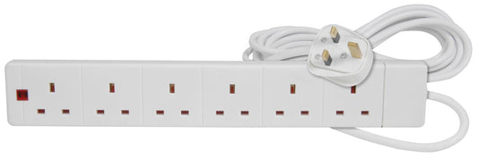 Mercury 6 Gang 5m Mains Powered Extension Leads with Surge Protection - White