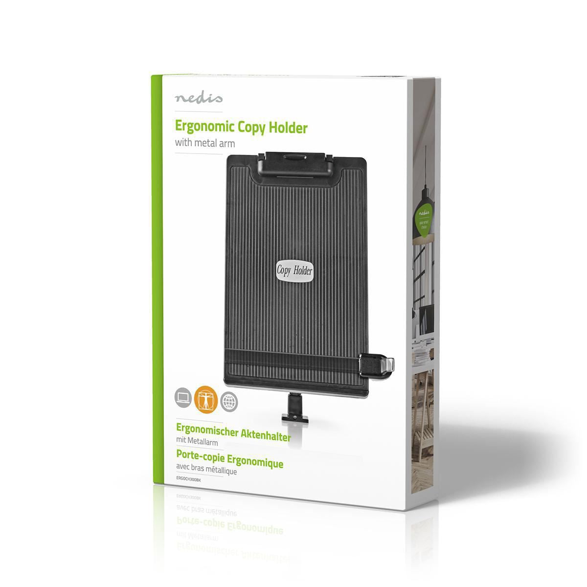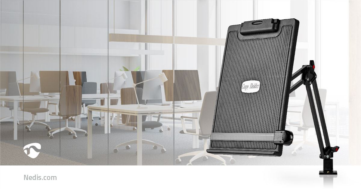 Nedis Copy Holder | Clip | Suitable for paper size: A4 | Adjustable Angle / Full Motion | Swivel angle: 360 °