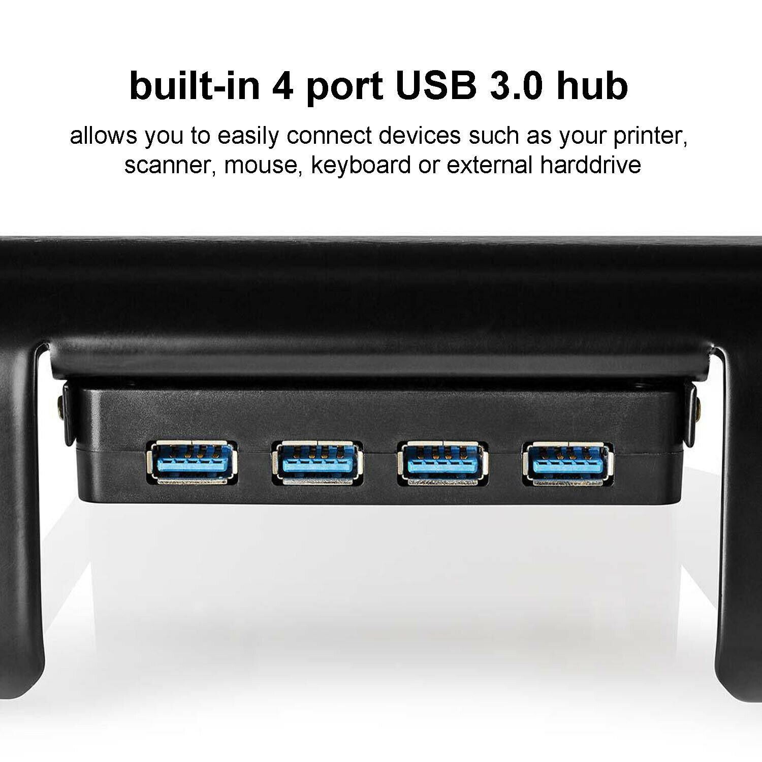 This Nedis ergonomic monitor stand allows you to position your screen at the perfect height and reduce pressure on your neck muscles. The mount can support one screen with a maximum weight of 18 kg and provides space to store your keyboard beneath it. Its built-in 4 port USB 3.0 hub allows you to easily connect devices such as your printer, scanner, mouse, keyboard or external harddrive.