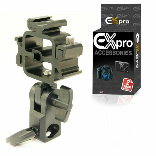 Ex-Pro Metal Triflash 3 Way Bracket with 3 Flash Cold Shoe Mounts [With Light Stand holder]