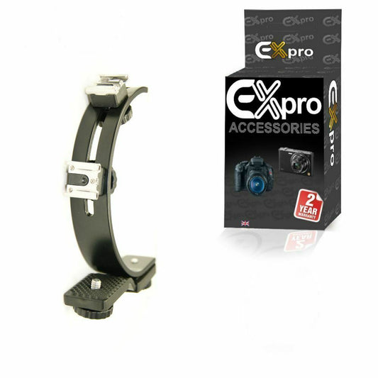 Ex-Pro C Shape Curved Dual Hot-Shoe/LED Light mount bracket for DSLR, Camcorders and DV Cameras