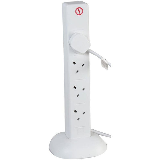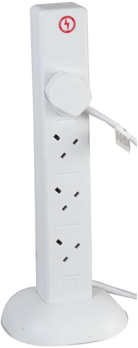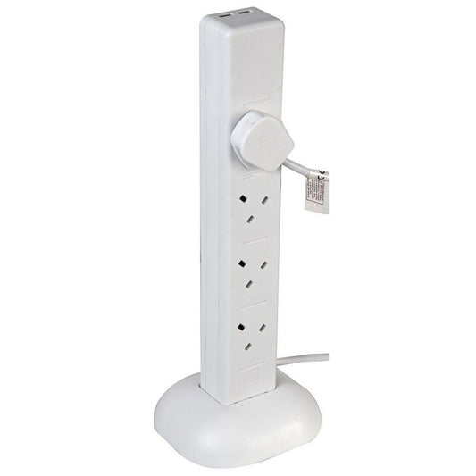 8 Gang Tower 2m Mains Extension Lead Socket 13A with USB Charge Ports - White