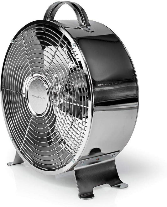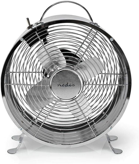 Nedis Retro Desk Fan 9-inch cm, 2-Speed Vintage Air Cooler 25 cm with Carrying Handle, Chrome