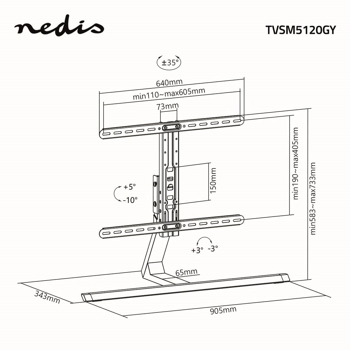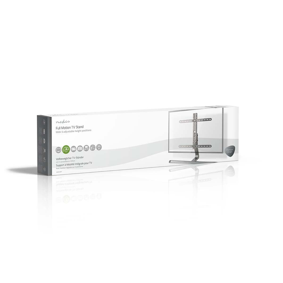 This Nedis© full motion desk/table TV stand is a modern and space saving table top solution which fits in any interior design. It features a streamlined and stylish solid aluminium base, leaving you enough space to put a soundbar in front of it. Thanks to the integrated cable management your TV table looks neat and tidy and there are no cables hanging around. The stand is suitable for all common TV-screens with a size of 37” up to 75”.
