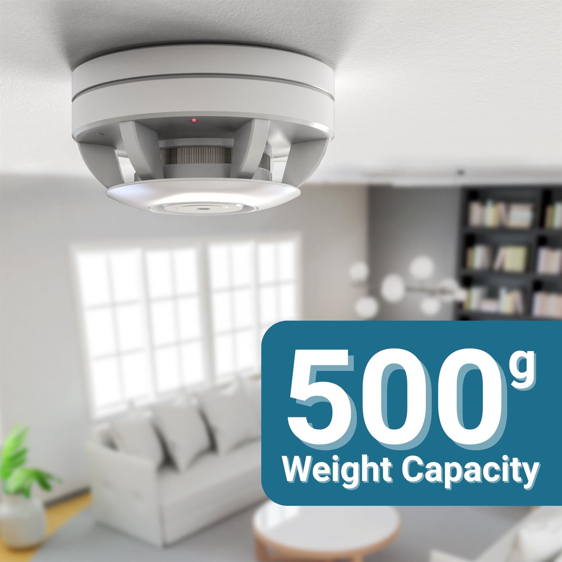 The self-adhesive mounting plates for smoke/heat detectors are easily installed in under a minute. Drilling holes in ceilings is no longer necessary.