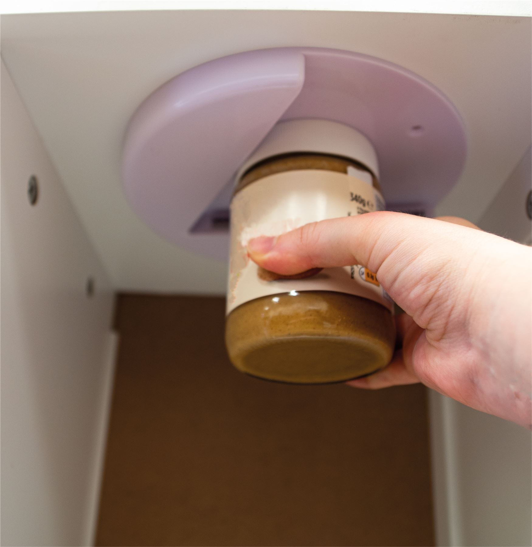 Under Cabinet Arthritis Jar Opener Perfect for those who suffer from arthritis or a weakened grip Makes short work of opening jars Suitable for use on the vast majority of jars No space is taken up in your drawers or on your counter tops A kitchen must have