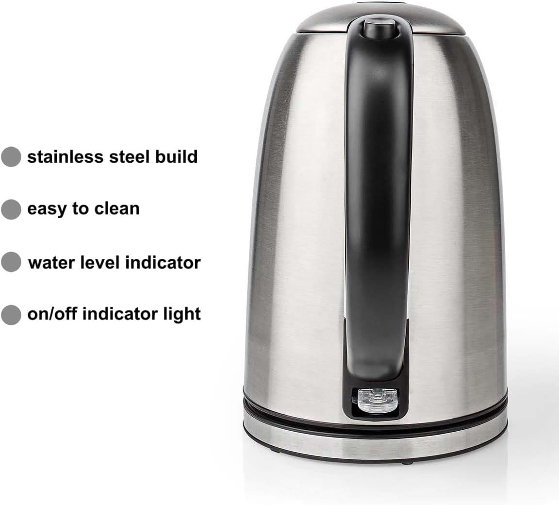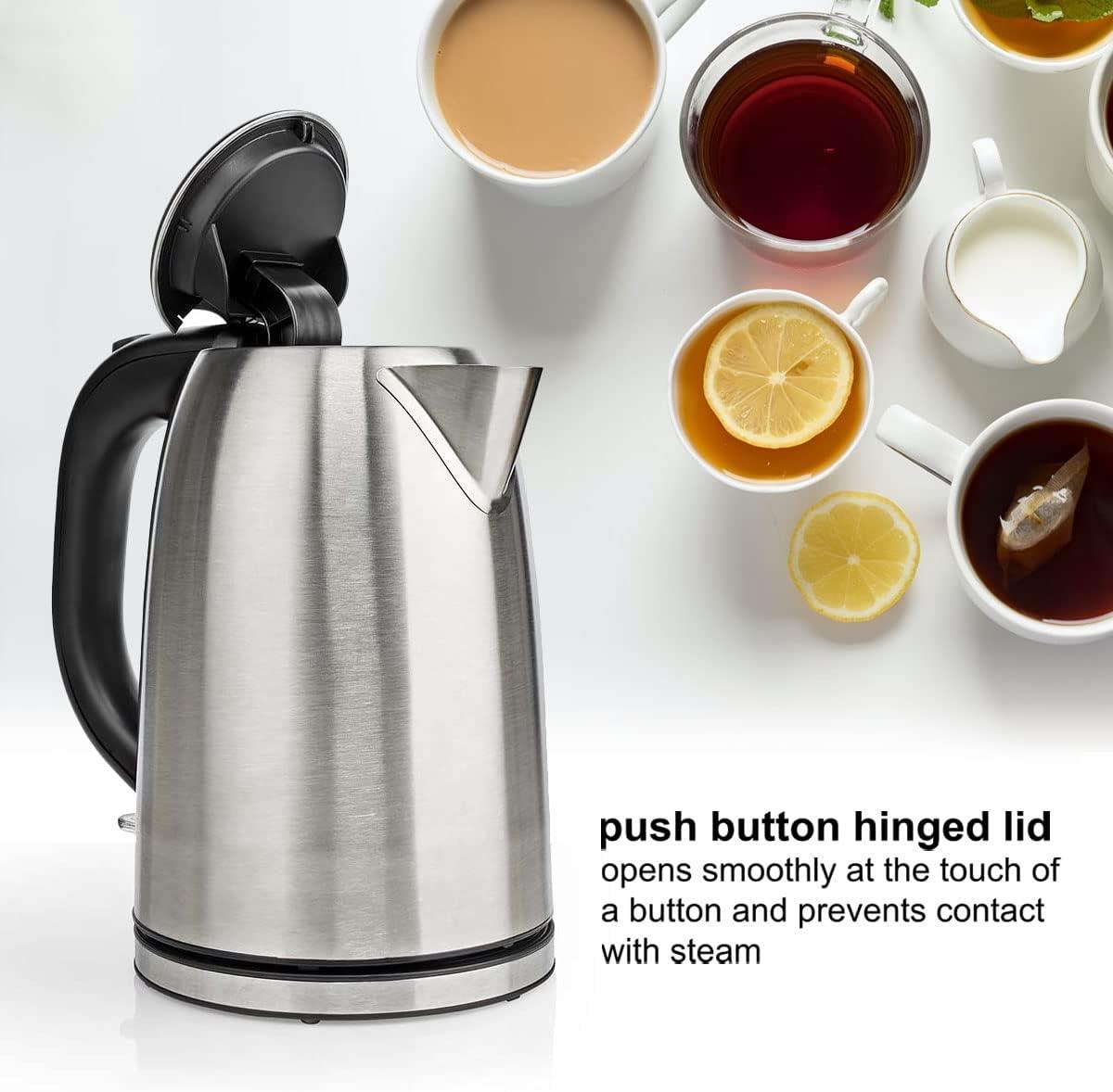 This stylish, powerful kettle works just as good as it looks: it has a generous 1.7-liter capacity and boils quickly due to concealed 2200 W heating element. The stainless steel finish makes this kettle a stylish, durable, and easy-to-clean addition to your kitchen. It is designed to hold enough water for six to eight cups.