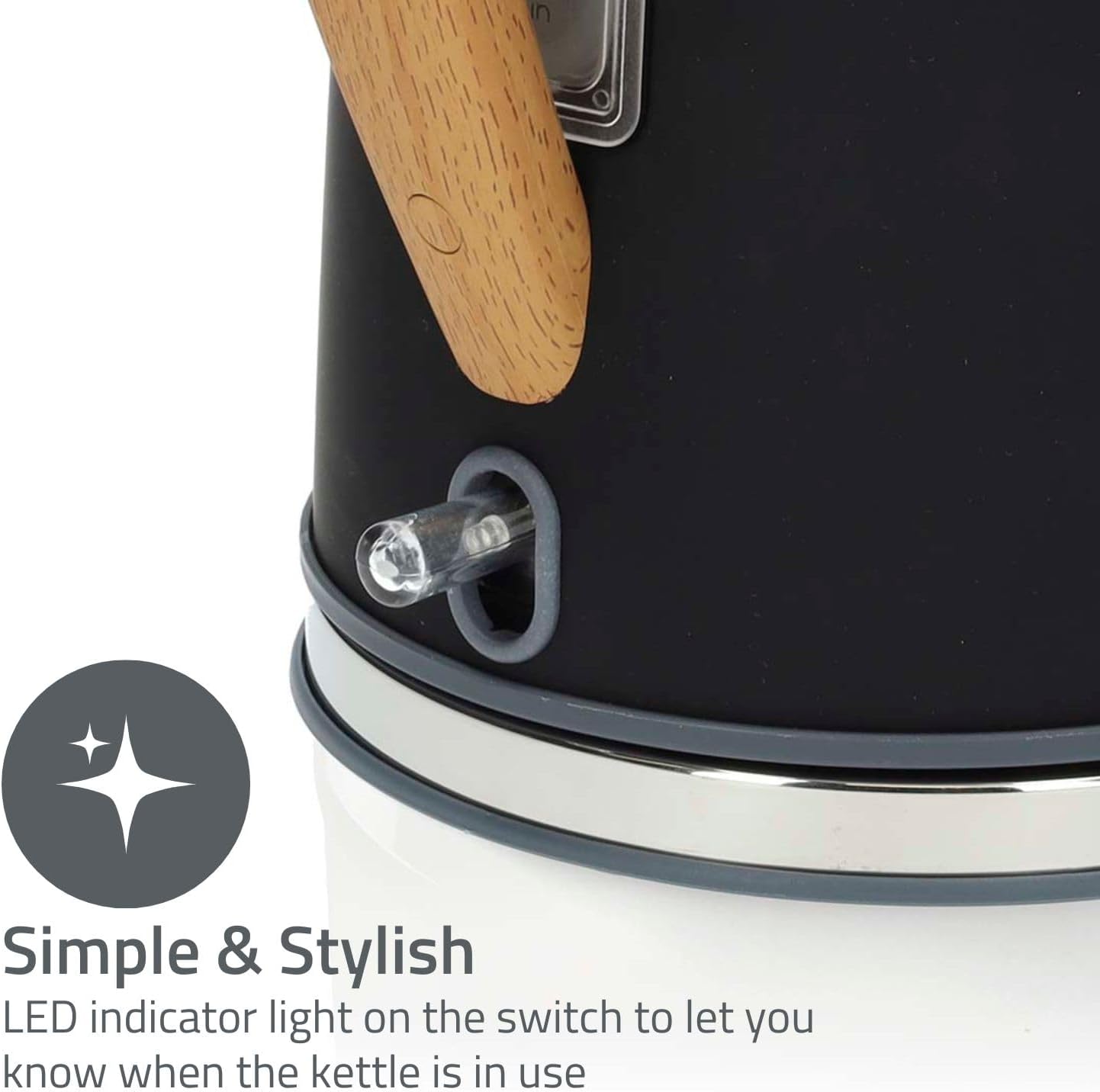 Nedis 1.7L Soft Touch Jug Kettle with Wood Effect Handle, Overheat Protection, Removeable Filter, 2.2KW - Matte Black