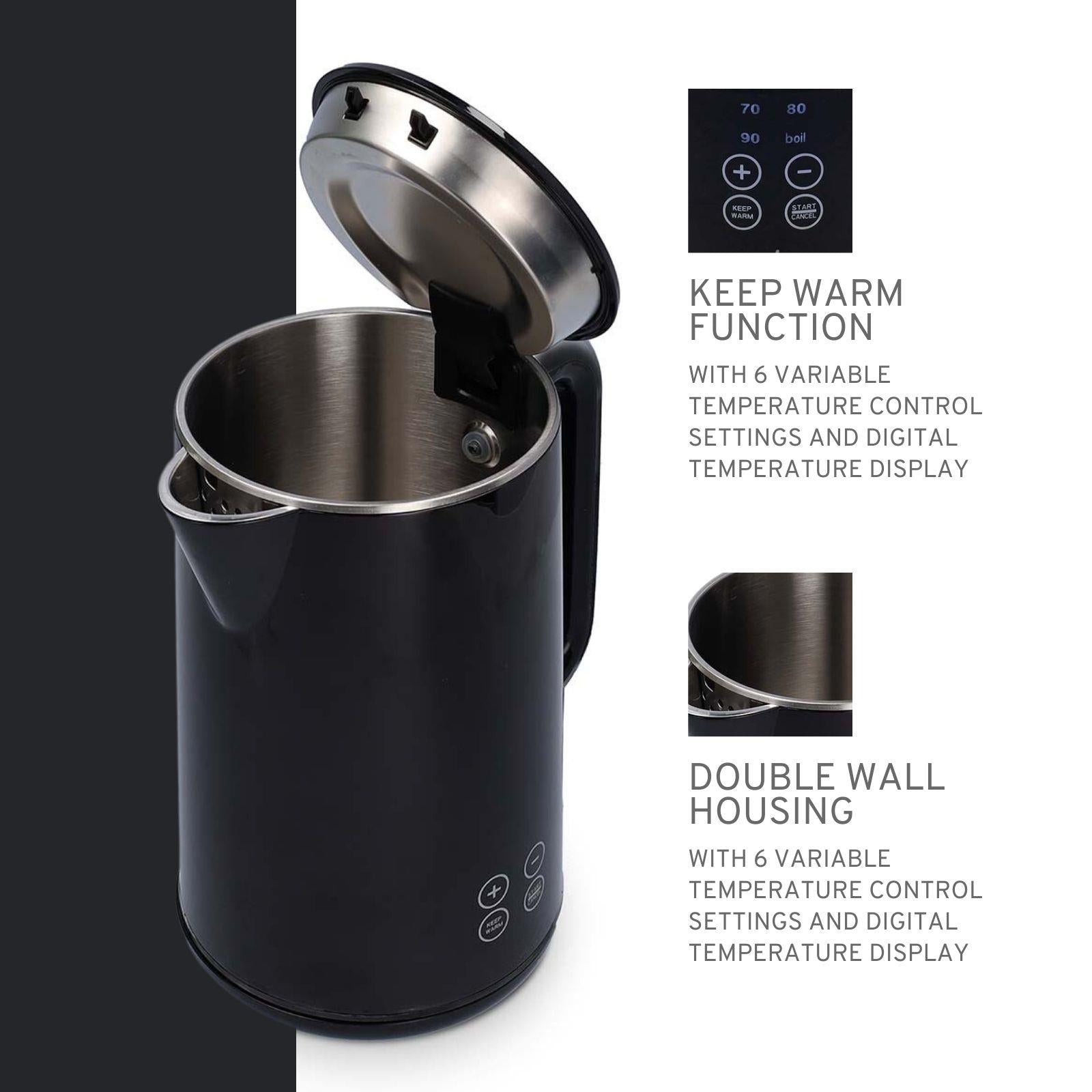 • Stylish black kettle with a volume of 1.7 litres and digital display on the housing