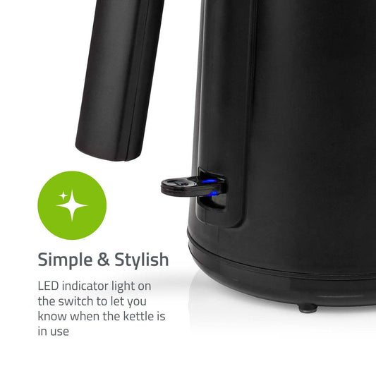 Nedis 1.7L Soft Touch Jug Kettle with Wood Effect Handle, Overheat Protection, Removeable Filter, 2.2KW - Grey
