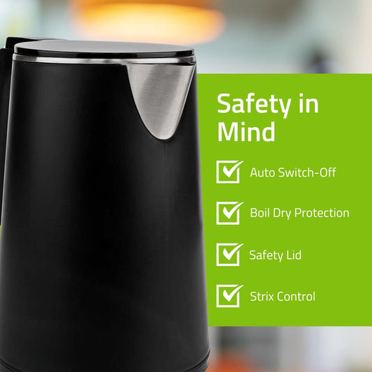 Nedis Electric Kettle 1.7L, Digital Temp Control 50-100oC, Keep Warm Function, 360 Degree Cordless Base, Black