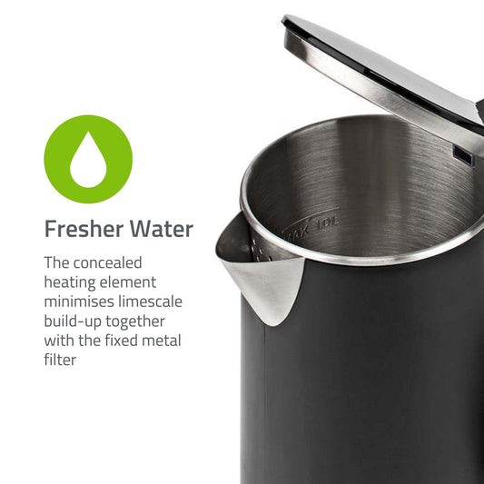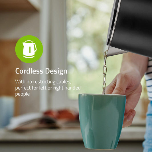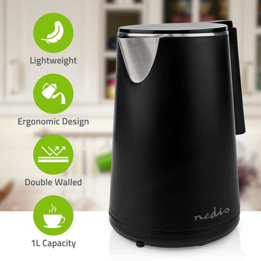 Nedis 1.7L Electric Kettle Cordless Silver 2200W Boil Dry Protection Auto Switch Off