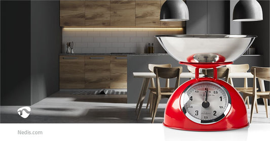 Nedis Retro Traditional Vintage Metal Mechanical Weight Baking 5kg Kitchen Scale Red