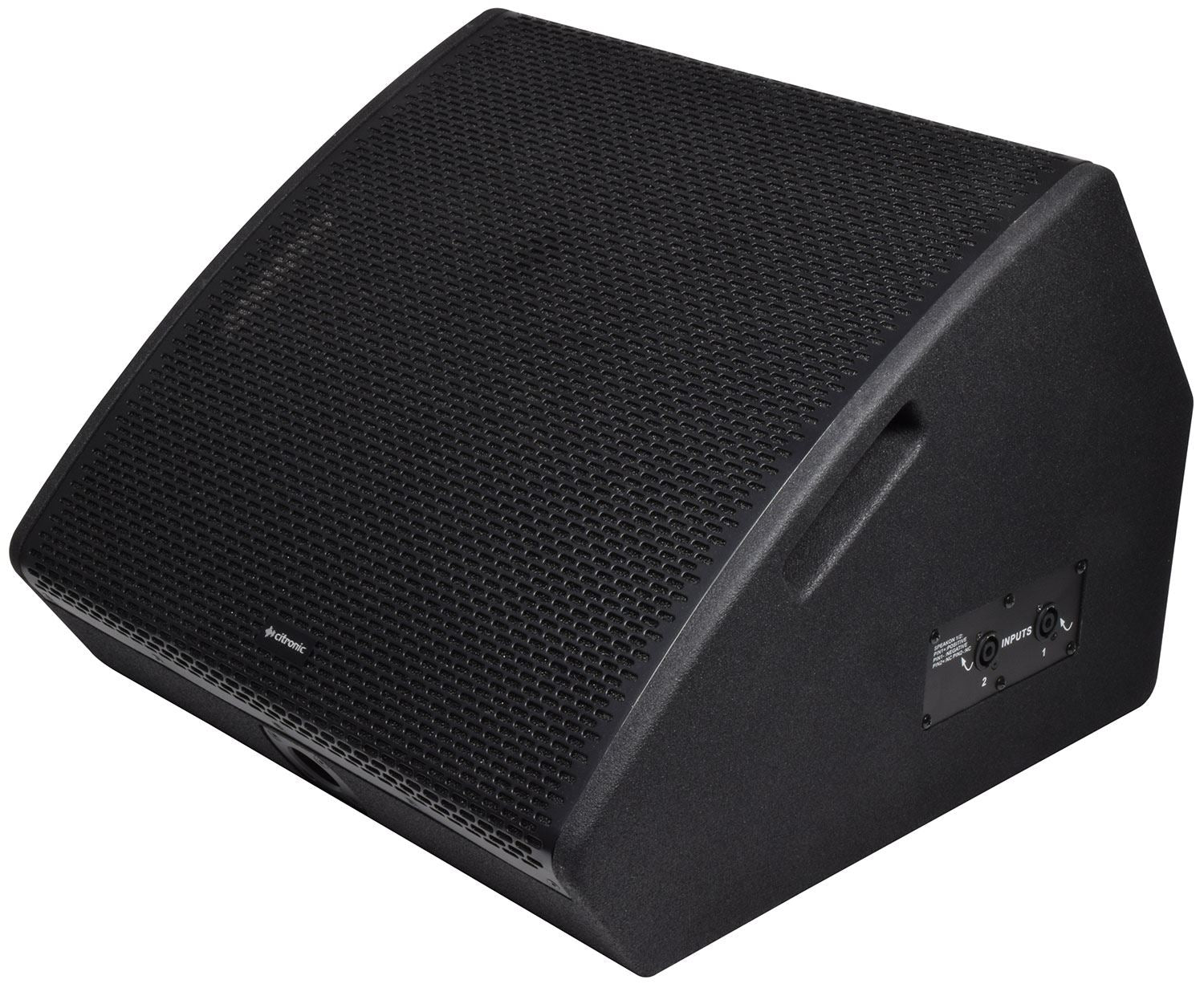 Passive wedge speaker in a durable, texture coated plywood cabinet with minimal footprint. The main driver delivers punchy low frequencies with the help of 2 bass ports and a concentric titanium tweeter is mounted within the main driver for perfectly aligned, sparkling high frequencies. An arched powder-coated steel grille provides heavy duty protection from the rigours of stage performances and forms 2 side handle holes for easy portability. A pair of twist-lock SPK connectors are wired in parallel to accept input from an amplifier and enable connection onto a further passive speaker or monitor if required. The compact size and high power handling means that this is a very capable unit for stage foldback but can equally serve as a compact PA speaker, thanks to its 35mm pole-mount socket and M8 flying points.