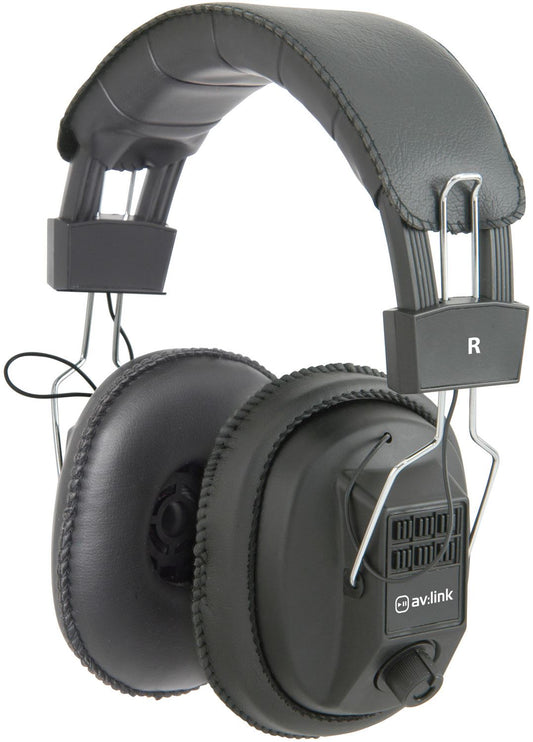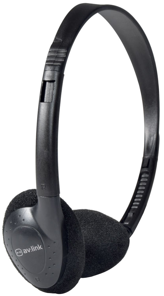 AV:link Lightweight Stereo Black Pad Myler Headphones for Schools Tour Companies