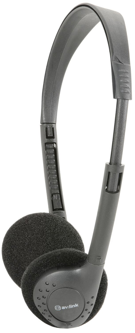 AV:link Lightweight Stereo Black Pad Headphones for Schools / Tour Companies