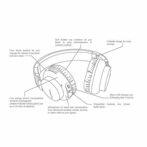 Bluetooth 4.2 technology ensures a wireless connection as flawless as a wired one with low energy technology. The headset pairs easily with tablet, smartphone and A2DP Bluetooth-enabled devices. Built-in rechargeable battery provides up to 10 hours communication time or music playback on a single charge. Bluetooth wireless headset function with a transmision range of up to 30 feet (10m) for total wireless convenience. Built-in microphone lets you talk hands-free on your smart phone or tablet. It works with online voice or video chats on PC or notebook. Built-in Microphone. Invisible microphone with high- performance sound quality for clear conversations. Adjustable Headband - Flexible and adjustable with memory scale to ensure each head shape is suited with best possible fit. Foldable Design - For easy storage and maximum portability, the foldable design can be kept in the handy carrying case.