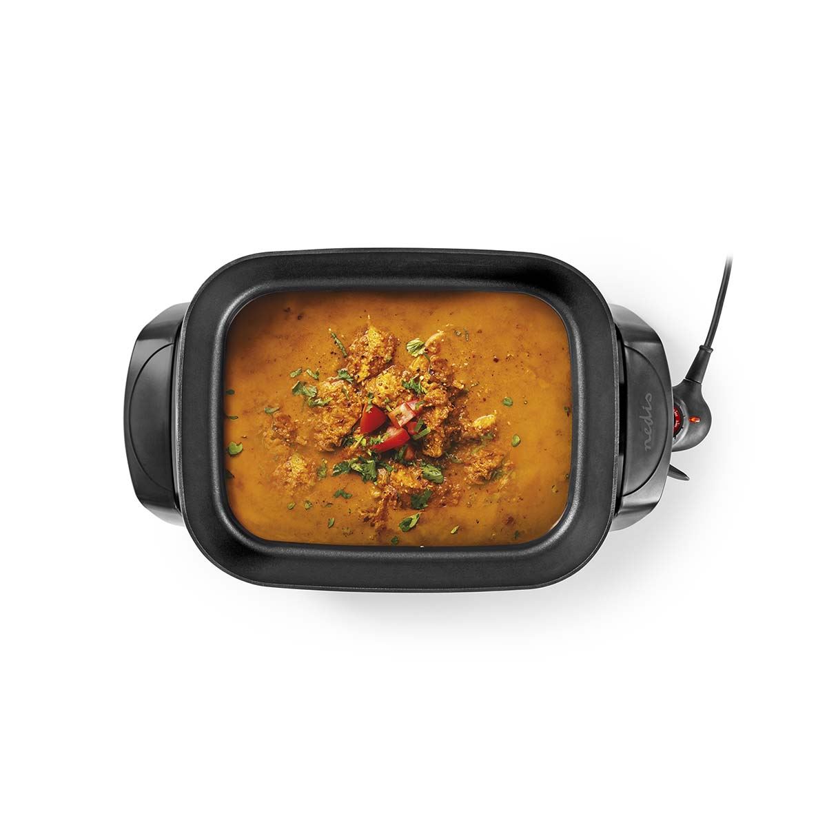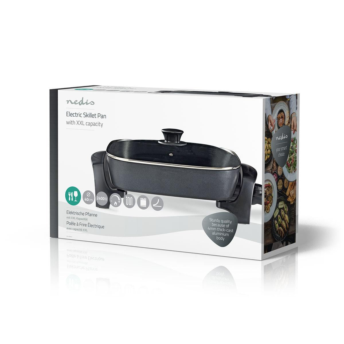 The Nedis electric frying pan is one of the most versatile appliances to upgrade your kitchen cookware with! It handles all sorts of cooking techniques. A large capacity and adjustable thermostat ensure that smaller to large dishes are perfectly prepared. Dishwasher safe and with a non-stick coating so cleaning is just as quick and effortless.