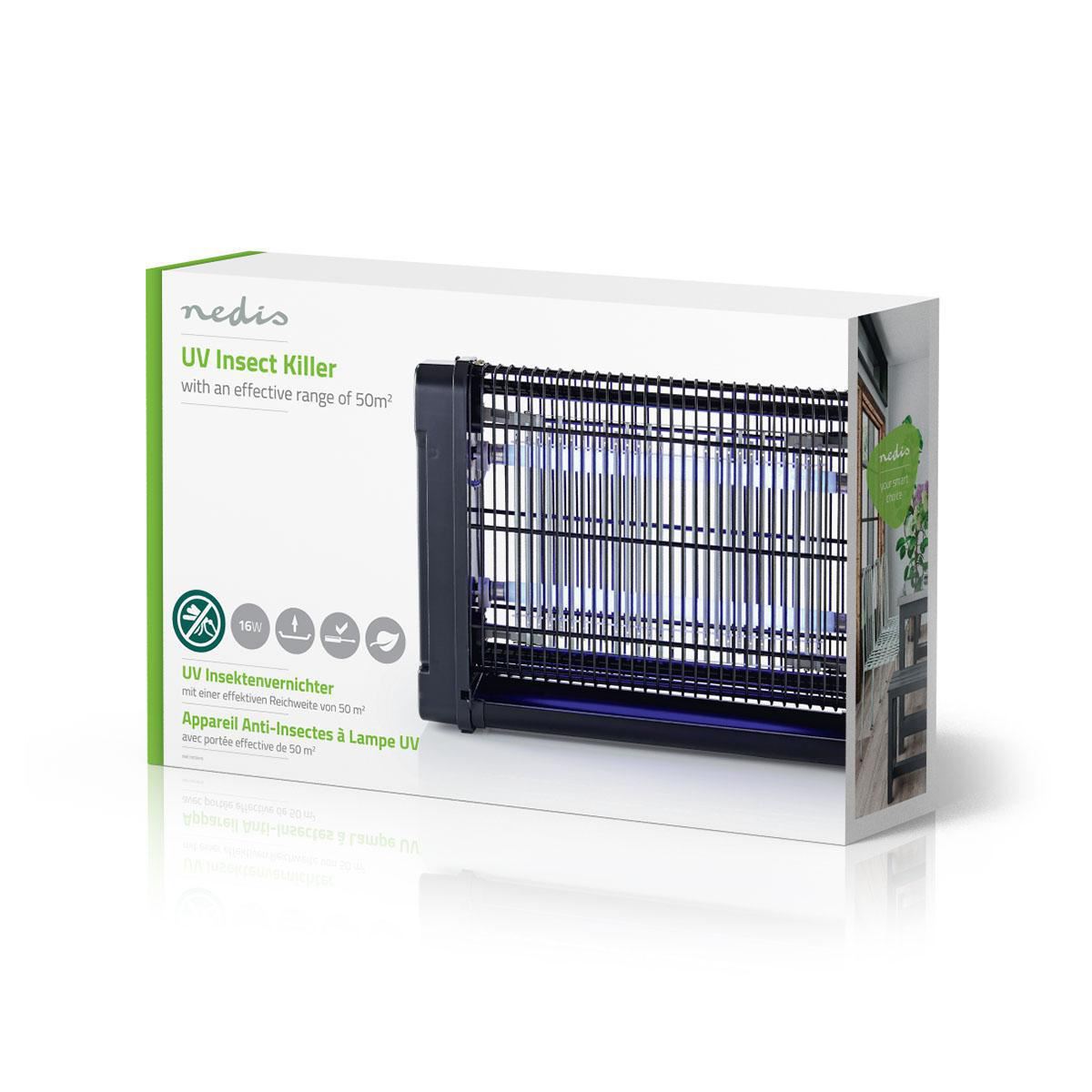 Eliminate mosquitos, flies, wasps and other annoying flying insects with this Nedis electric insect killer. With only two 8-W UV-A lamps, this electric insect killer operates energy efficient, yet super effective: its open design covers the largest area possible. Insects lured by the UV-A lamps are instantly killed upon contact with the inner high voltage grids. This involves no chemicals which is eco-friendly and safe to both humans and the environment. Including removable and washable collecting tray for easy cleaning.